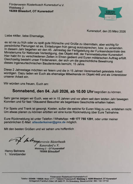 Ehemaligentreffen 2025, ein Kofferraum öffnete sich und die als vernichtet angenommene Großanzeige vom Dispatcher wurde dem Verein übergeben. Großen Dank an den Retter der sie beim Rückbau des Bunkers gerettet hatte und so lange sicher aufbewahrt hat. DANKE !!!
